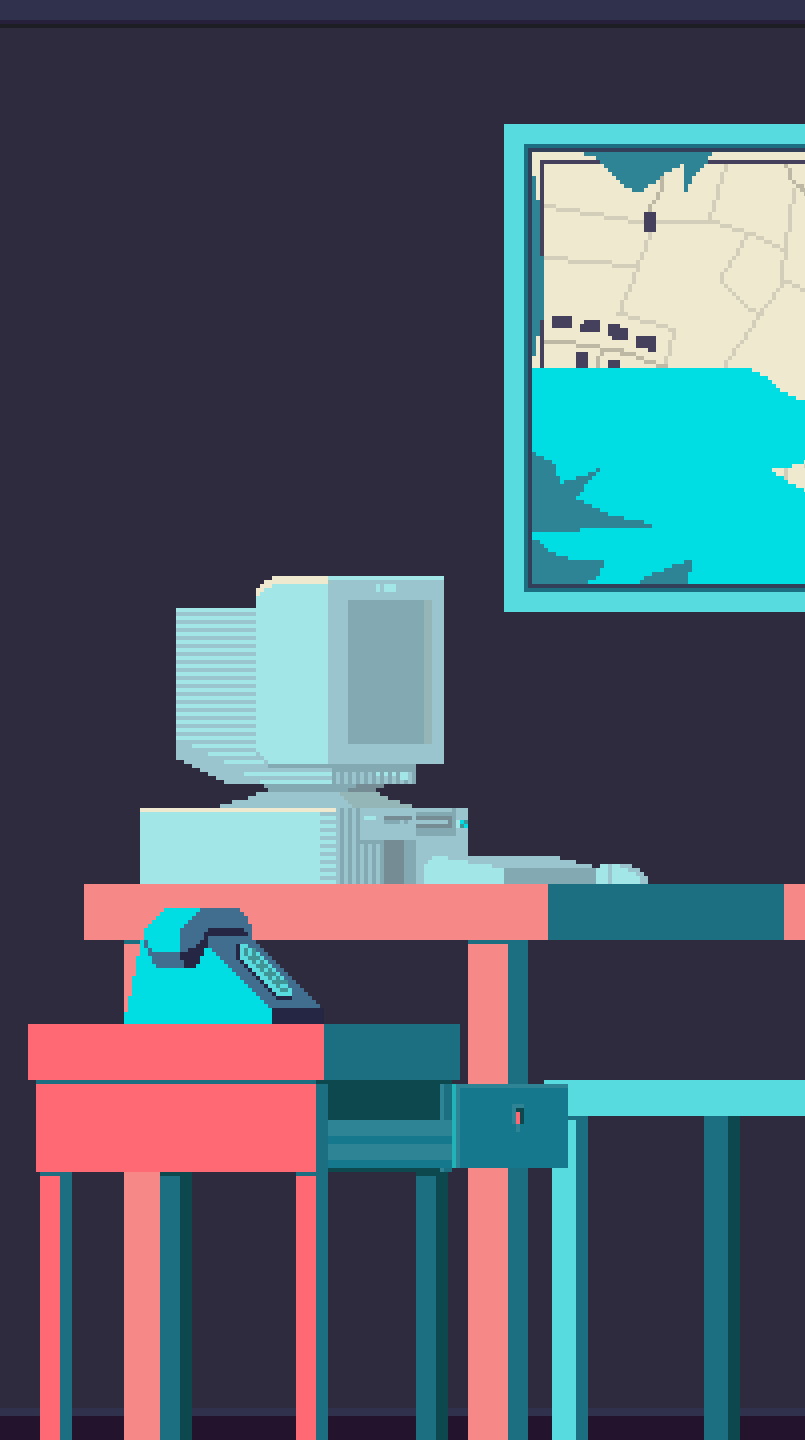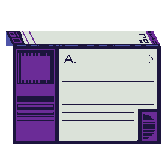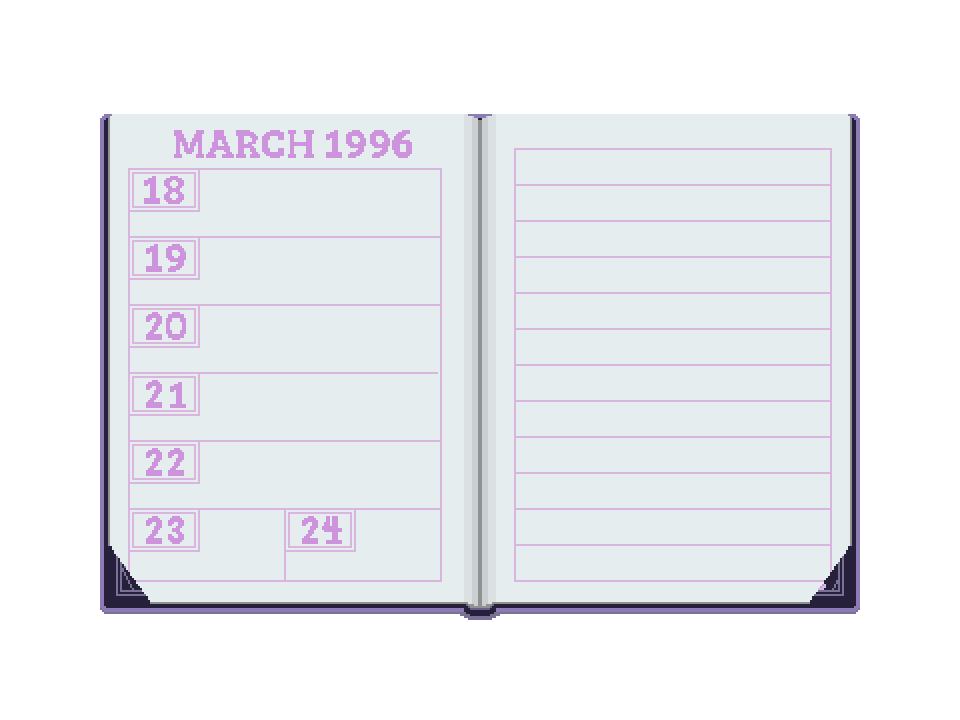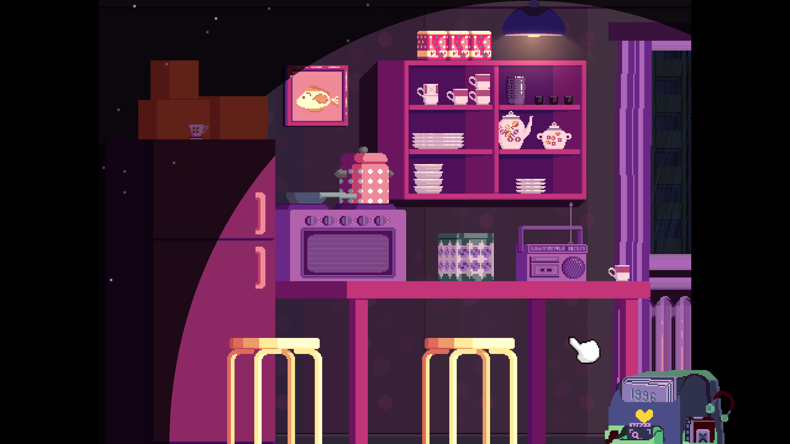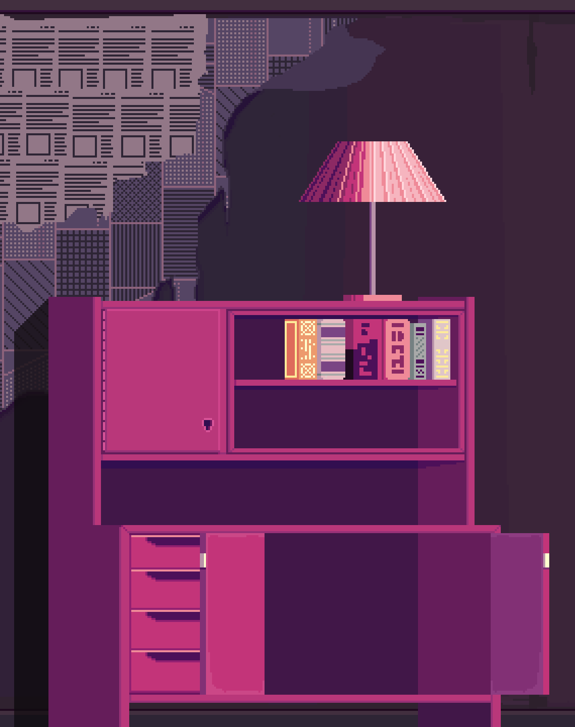 Korter 1996 is a point-and-click mystery game in the style of Unpacking where you find a secret passageway to other people's apartments and can rummage around in their personal items. As the lead designer and artist, I developed a pixel art style for the project that would work for item placement and setting a synthwave mood.